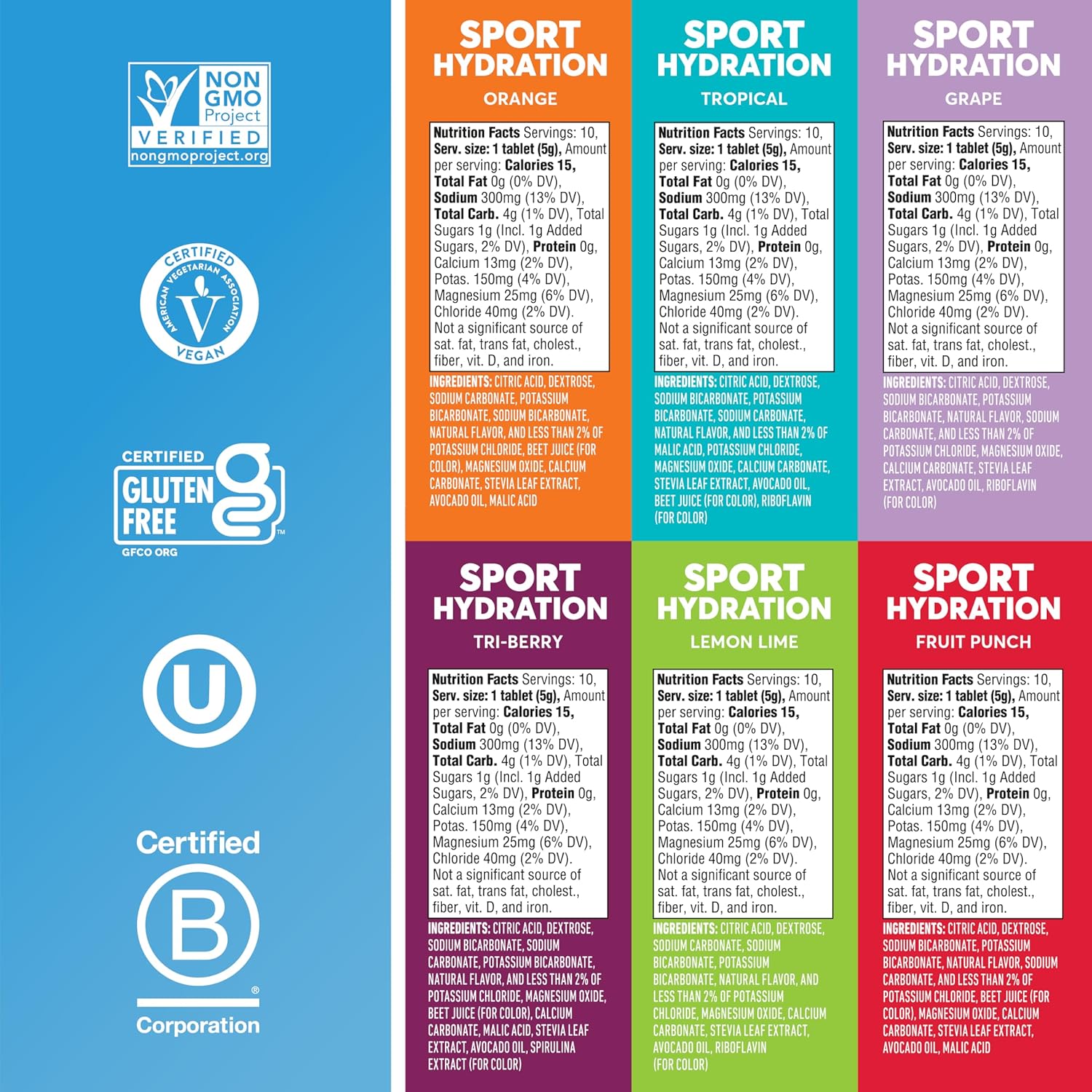 - Mixed flavor electrolytes: Choose from a six-flavor assortment including Fruit Punch, Grape, Strawberry Lemonade, Tropical, Lemon Lime, and Tri-Berry.