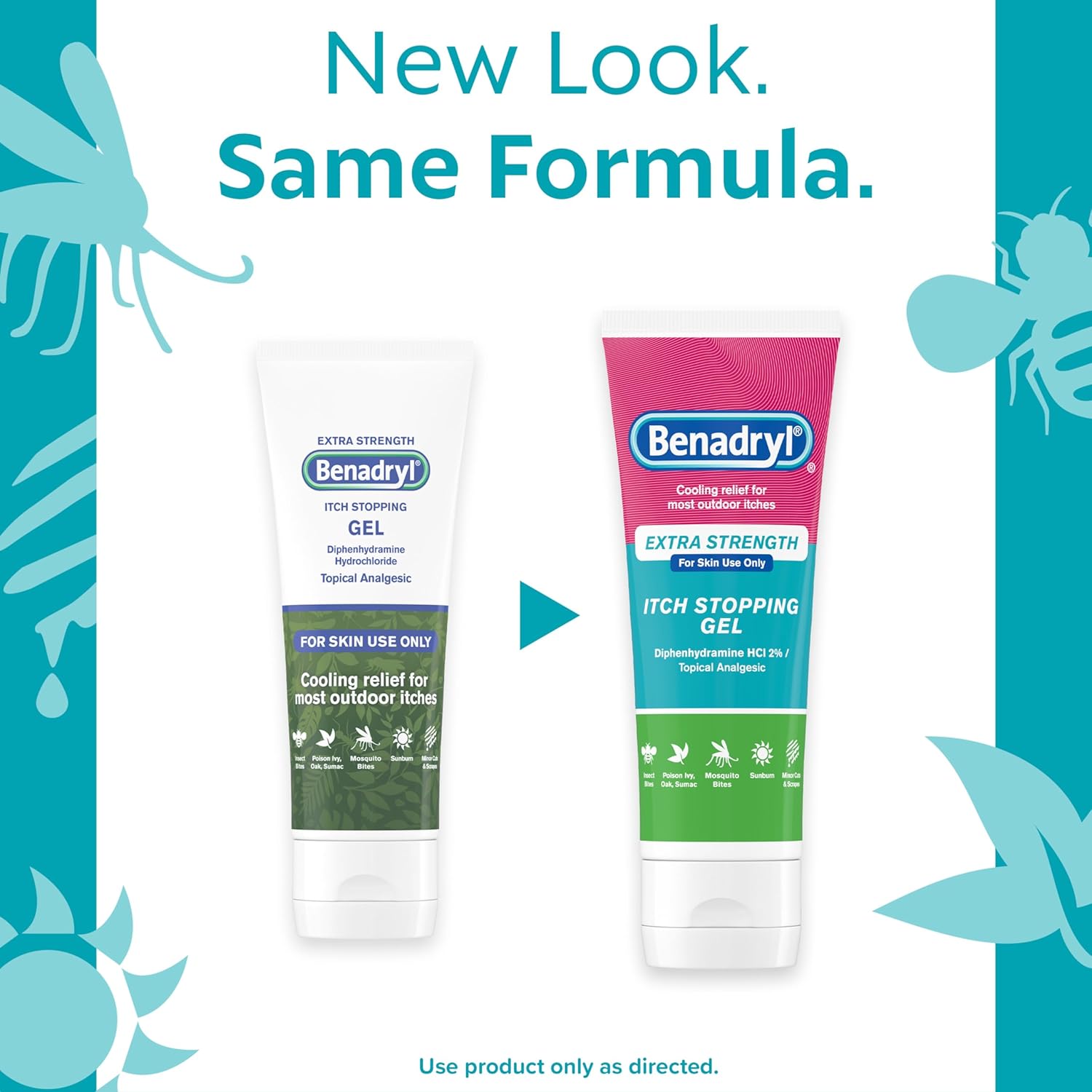 Benadryl Extra Strength Anti Itch Relief Gel is a fast-acting topical solution from the trusted Benadryl brand, designed to provide powerful relief from itching and pain caused by insect bites, sunburn, minor burns, and rashes. With 2% diphenhydramine HCl, this soothing, cooling gel soothes skin irritations quickly, making it perfect for camping trips or everyday first aid. Suitable for adults and children over 2, it's a must-have for any outdoor adventure or home medicine cabinet.